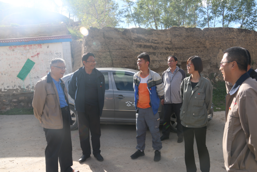 (圖為集團公司調研組在湟源縣和平鄉草溝村與鄉黨委書記、村委書記交流扶貧攻堅工作)