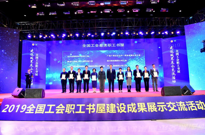 活動現場,全國工會職工書屋建設領導小組發布了"全國工會最美職工書屋"、"與共和國同行"--全國職工主題閱讀活動優秀組織單位、全國工會職工書屋"突出貢獻工作者"等典型成果,省物產集團黨委領導精心打造的省物產集團職工書屋榮獲"全國工會最美職工書屋"榮譽稱號。