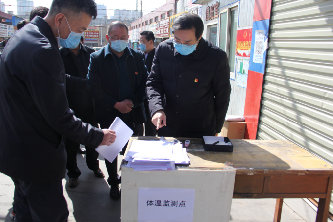 市委書記王曉一行在接受體溫測量與車輛消毒后,進入汽配市場。在檢查中,向三建公司負責人詳細詢問疫情防控工作、復工復業情況和生產經營存在的困難,公司負責人就疫情防控工作進展與復工復業情況進行了匯報。疫情發生后,公司黨支部認真貫徹落實習近平總書記關于堅決打贏疫情防控人民戰爭、總體戰、阻擊戰的重要講話,重要指示批示精神,在省委省政府、省國資委黨委及集團公司黨委的領導下,嚴格落實疫情防控責任,健全完善了疫情防控體系,一是第一時間成立新型冠狀病毒感染的肺炎防控工作領導小組,制定《新型冠狀病毒預防及應對應急預案》,相關職能部門工作人員第一時間執行落實,第一時間聯系采購疫情防控物資,輿論宣傳第一時間正面發聲;疫情緩解后,第一時間向相關部門提交了開業申請,待批復下發后,在做好開業準備的同時,做好商戶房租減免工作;二是繼續鞏固深化"不忘初心、牢記使命"主題教育成果,牢固樹立"生命重于泰山、疫情就是命令、防控就是責任"思想,堅定信心,提高政治站位,實現抗疫阻擊戰的勝利和經濟社會發展目標"雙勝利"。三是嚴格做好"防輸入、防擴散、防輸出"工作,將市場3個入口改為目前的1個入口,并增派工作人員及保安為進入市場人員測體溫、消毒及人員實名登記后進入,對市場勸返點、辦公區域、公共區域等重要關卡、重點崗位、重點人員進行跟蹤監測管理,落實商戶疫情防控責任,并簽訂目標承諾,確保做好疫情防控工作前提下,有序推進商戶復工復業。