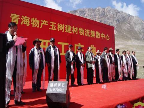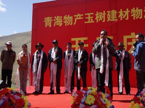 省玉樹地震災后重建現(xiàn)場指揮部指揮長、副省長馬順清宣布建材物流集散中心正式開工并講話。省政府副秘書長巨偉、省經(jīng)委、省城鄉(xiāng)住房建設廳、西寧市政府、玉樹州政府相關部門、玉樹縣有關負責同志,省物產(chǎn)集團總經(jīng)理王玉輝、黨委書記白家林、副總經(jīng)理物產(chǎn)化工公司董事長耿保平等參加了開工儀式。