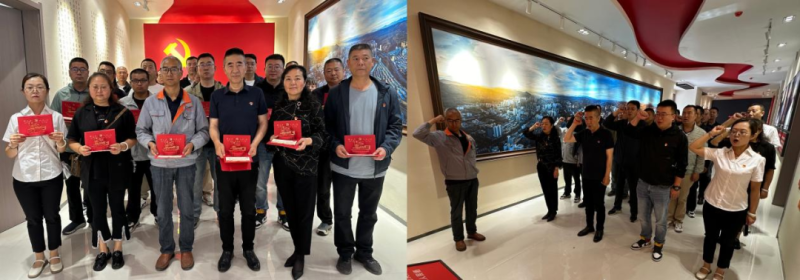 參觀結(jié)束后,全體黨員面對黨旗,莊嚴(yán)宣誓,重溫入黨誓詞,公司黨委書記王兆明為在場的黨員同志發(fā)放政治生日賀卡,并贈予政治生日祝福。