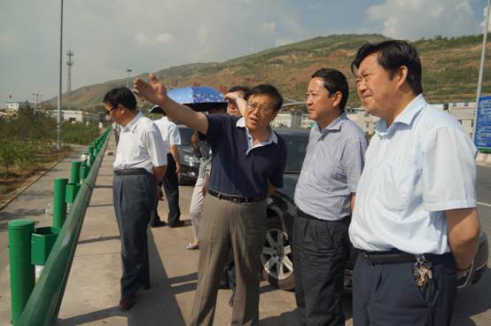 圖一:集團王總向毛占彪主任(左二)一行介紹青海物產(chǎn)北川工業(yè)物流園百萬噸倉儲項目建成后的運營情況